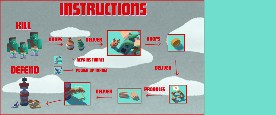 The drunk zombies are trying to get to YOUR power source and the last reidneer in existence. Your job is to prevent that by powering your tower with burning wood.